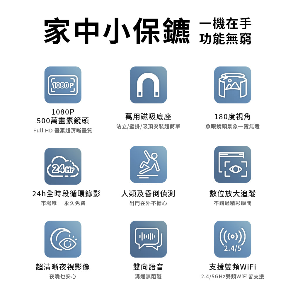 1080P 全景AI雙頻WiFi雲端監視攝影機