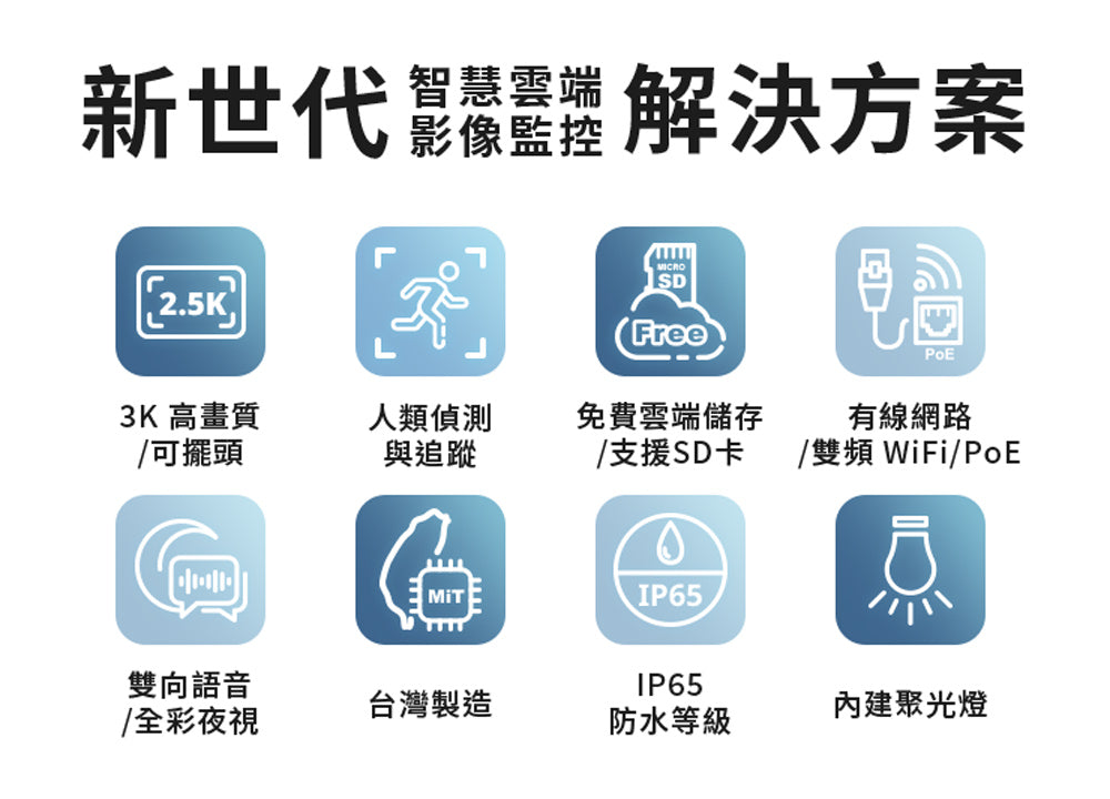 | 人類偵測 | ✔ | ✔ | ✔ | ✔ | ✔ | ✔ | ✔ | ✔ |